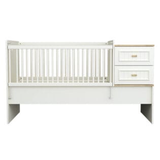 سرير أطفال أبيض (BW1065) بعجلات – مقاس 120 × 60 سم