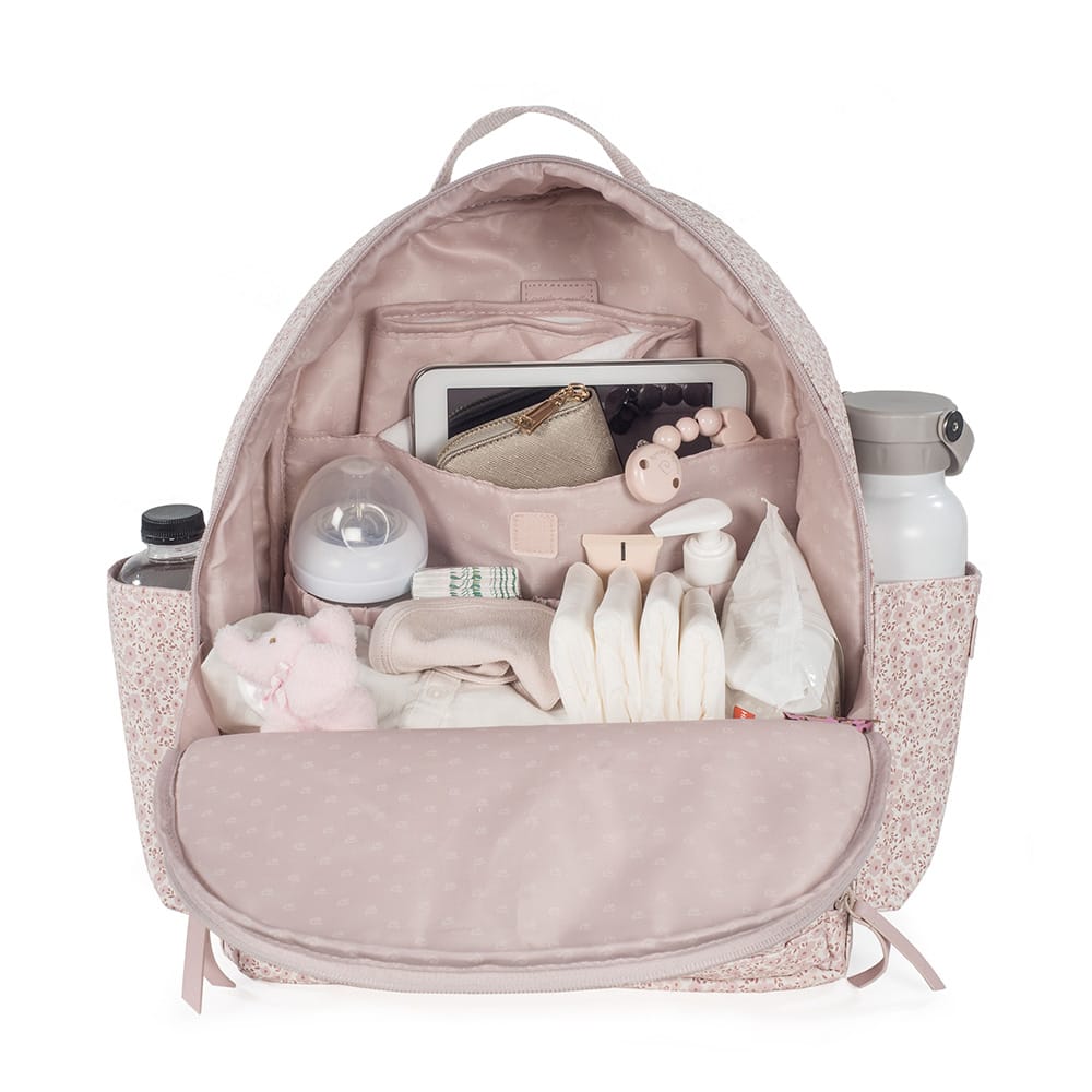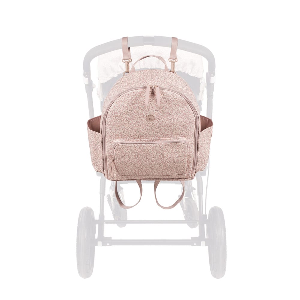 حقيبة ظهر للأمهات ماركة (Pasito a Pasito) – زهري منقوش بخطوط زهرة الـ Mellow