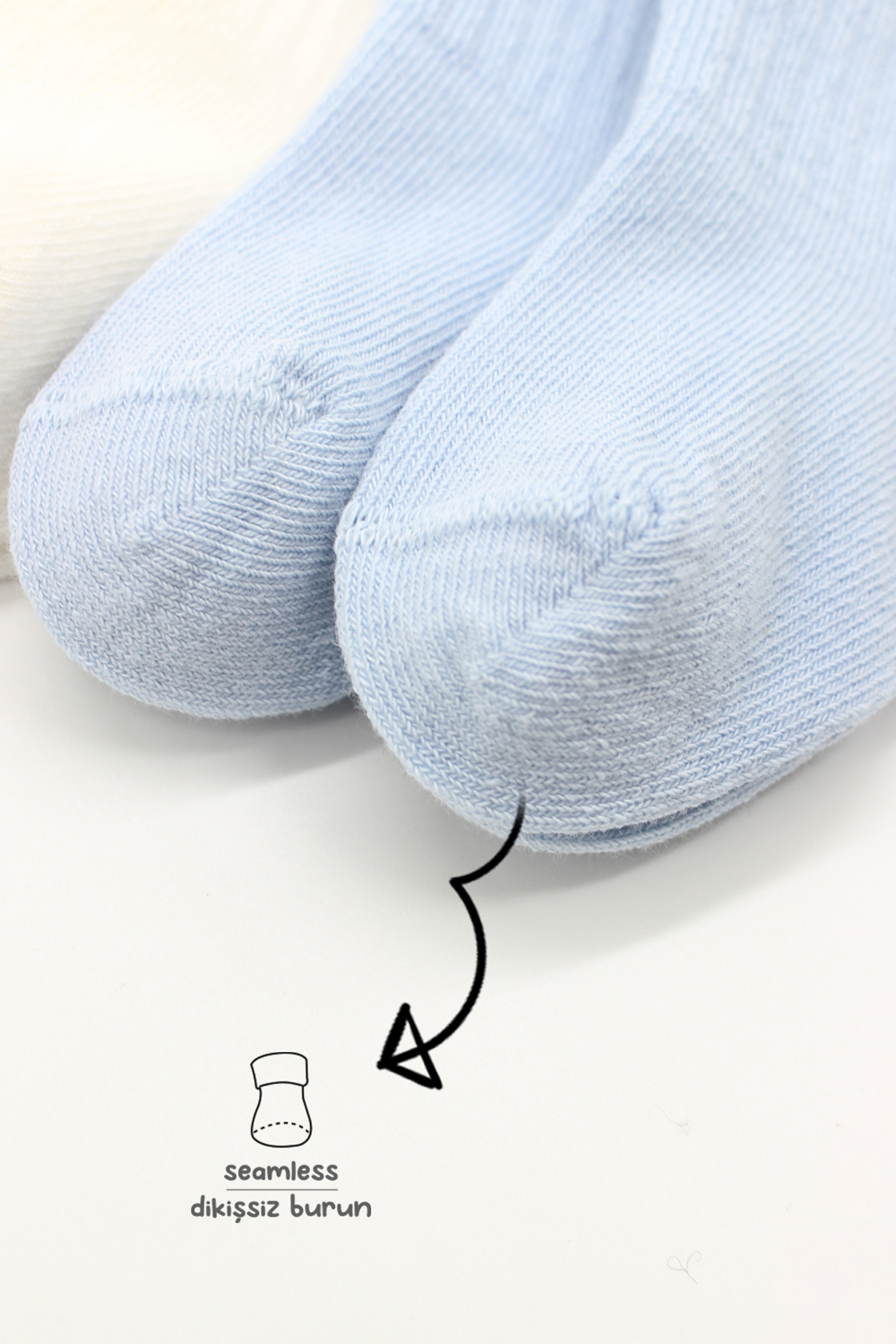 تصميم فريد من نوعه: تستخدم جواربنا لحديثي الولادة خياطة متطورة بدون عظم على أصابع القدمين، عظام صغيرة ومسطحة بدون احتكاك، أكثر راحة. تصميم لاسلكي إضافي متناسق على الظهر يمنع الطفل من الالتصاق أثناء عملية الارتداء وإتلاف الجلد الناعم.