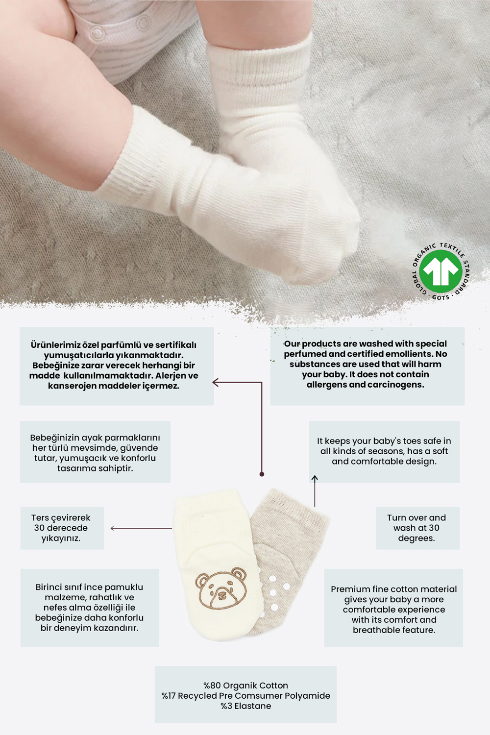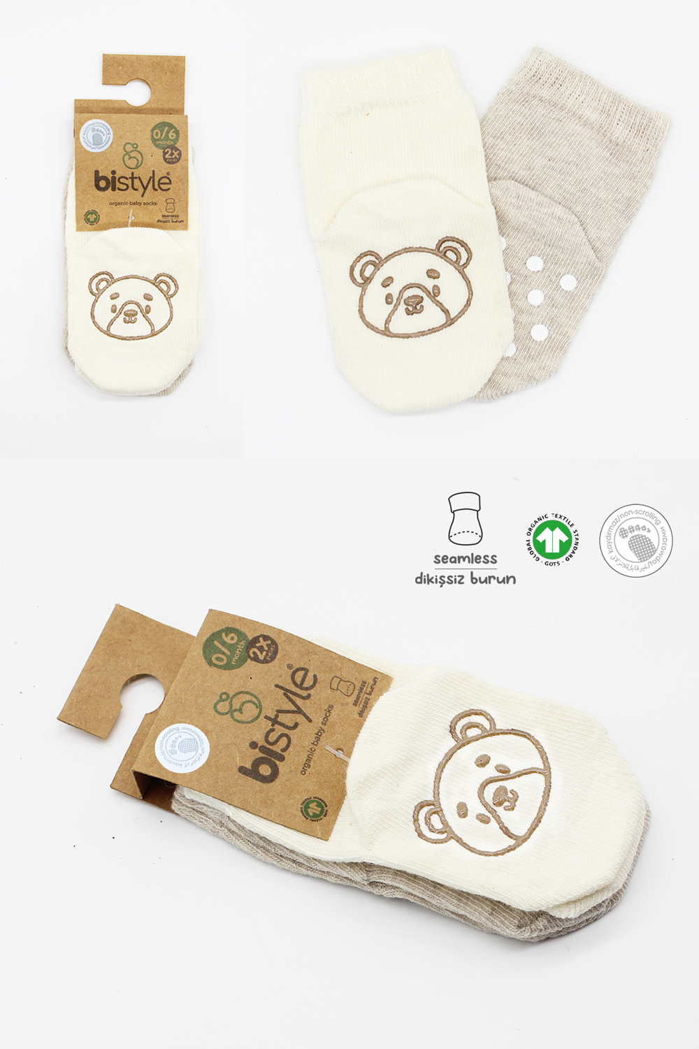 بيستايل جوارب عضوية ممشطة مانعة للانزلاق من بستايل 2 زوجين بيج (12-24 م)