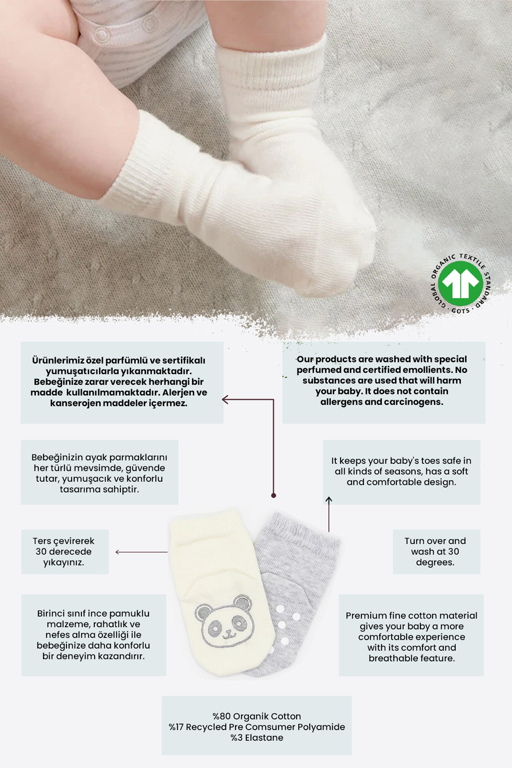 بيستايل جوارب عضوية ممشطة مانعة للانزلاق من بستايل 2 زوج من الجوارب العضوية (12-24 م) رمادي