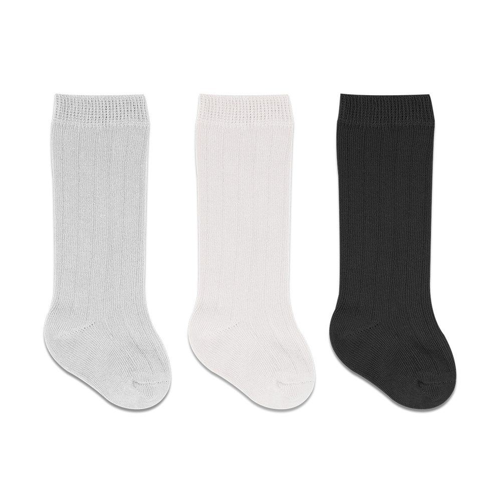 بيستايل 3 أزواج جوارب للركبة (6-12 م) (أسود، رمادي، بيج)