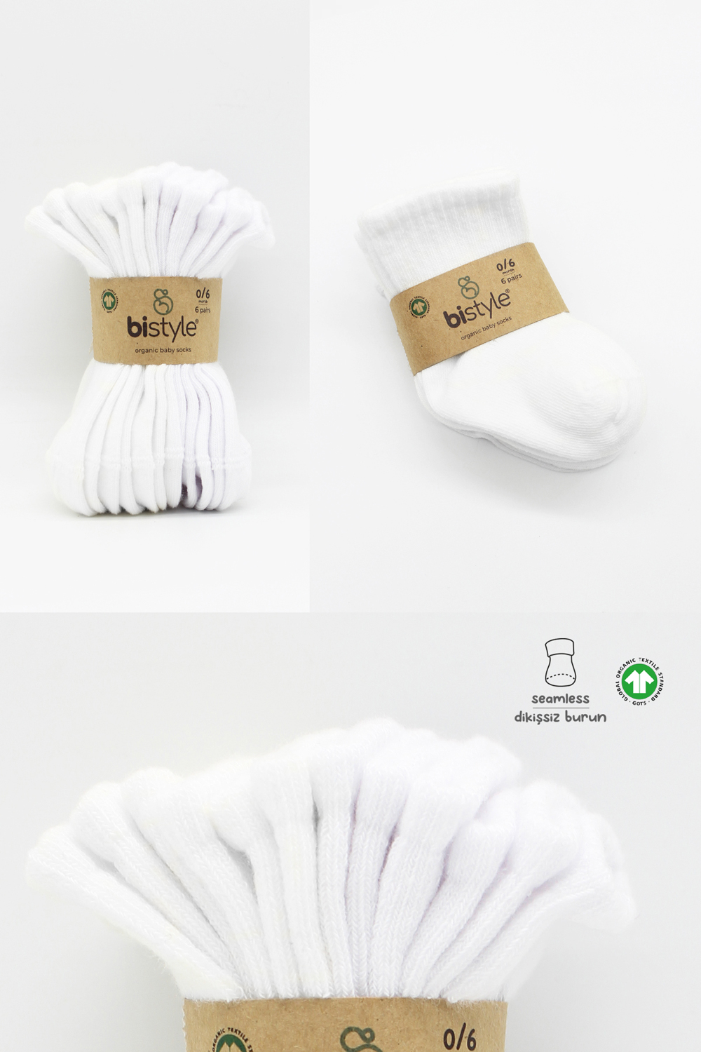 بيستايل 6 أزواج من الجوارب الربعية المسطحة الممشطة المسطحة (24-36 م) أبيض