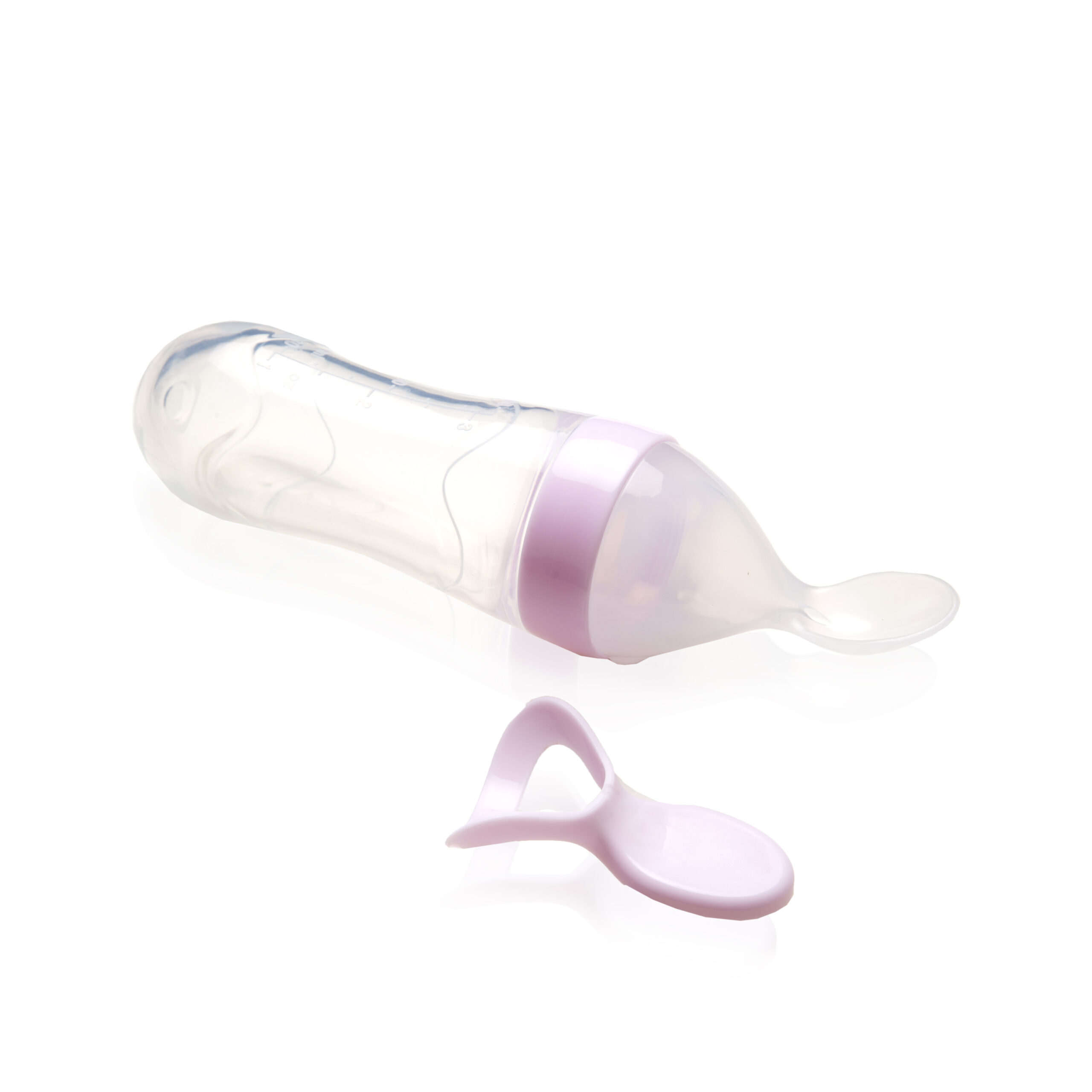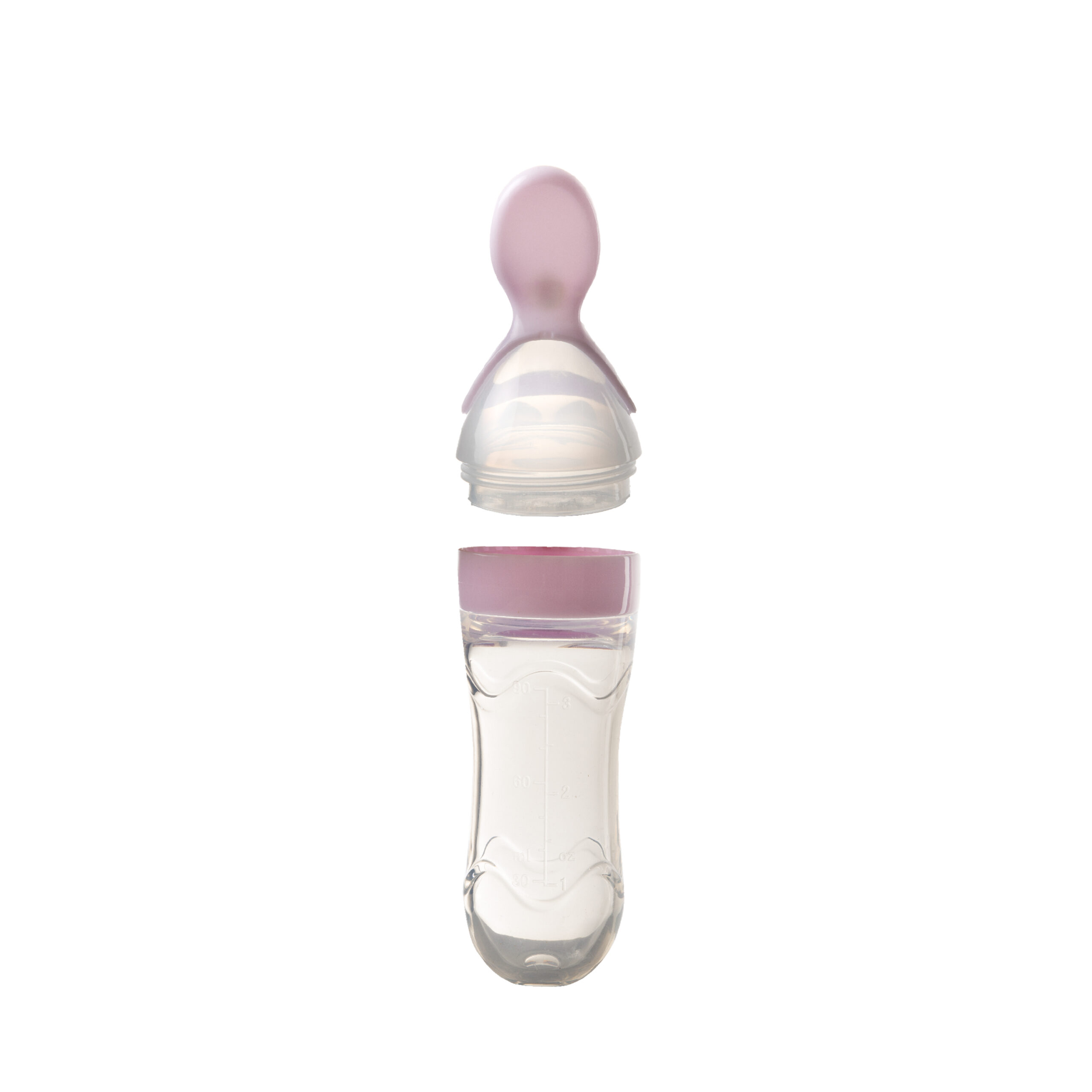 مع ملعقة الضغط، يمكنك إطعام طفلك بسهولة بيد واحدة. وبفضل الغطاء الواقي الخاص بها، فهي تمنع انسكاب الطعام. لا تحتوي على الفثالات و BPA. يمكن غسل جسم السيليكون بالماء الساخن. الاستخدام: أثناء وضع الطعام في الملعقة، املئي جسم السيليكون قليلاً وأغلقيه.