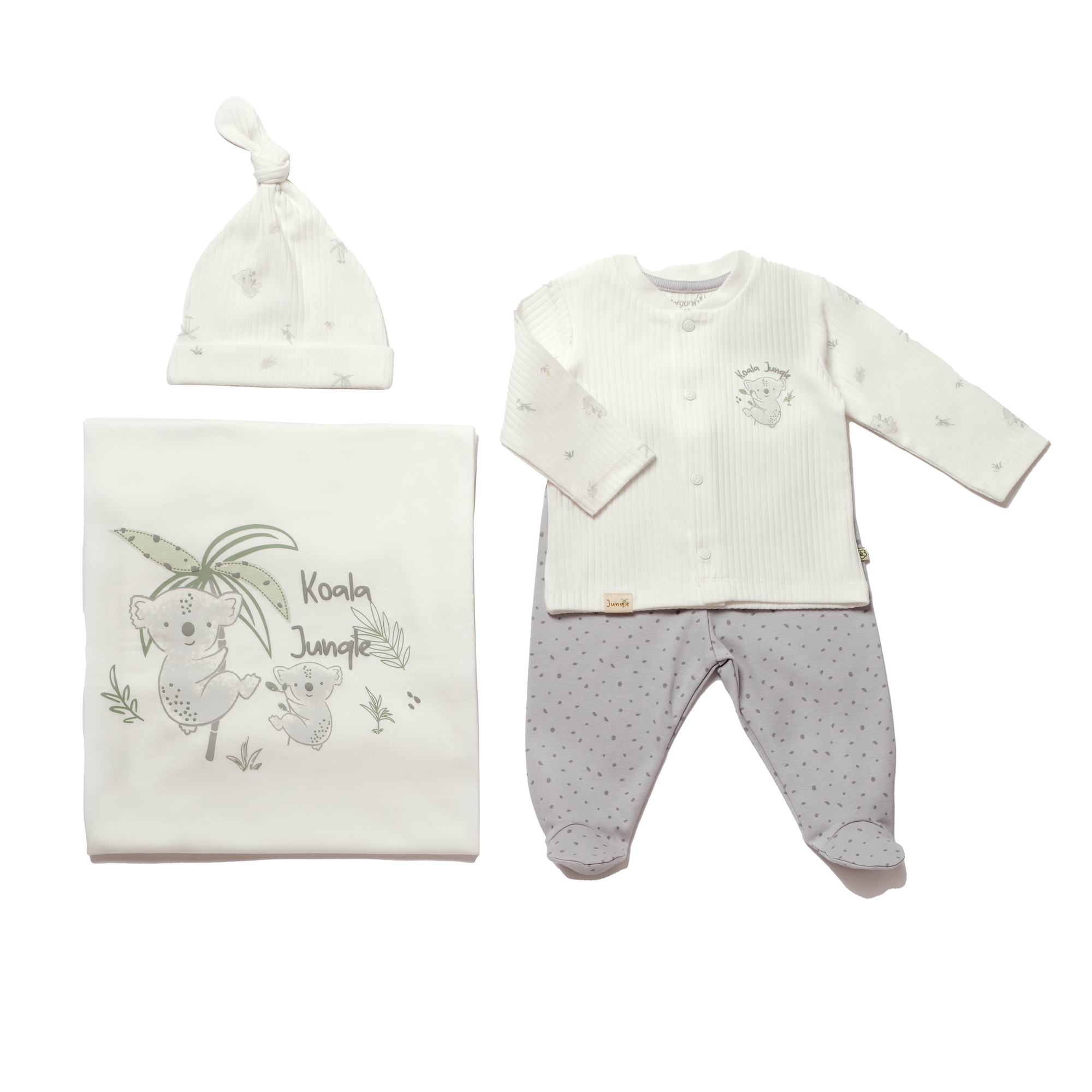 طقم بطانية كوالا جانغل من 4 قطع باللون الرمادي (0-3 شهور)