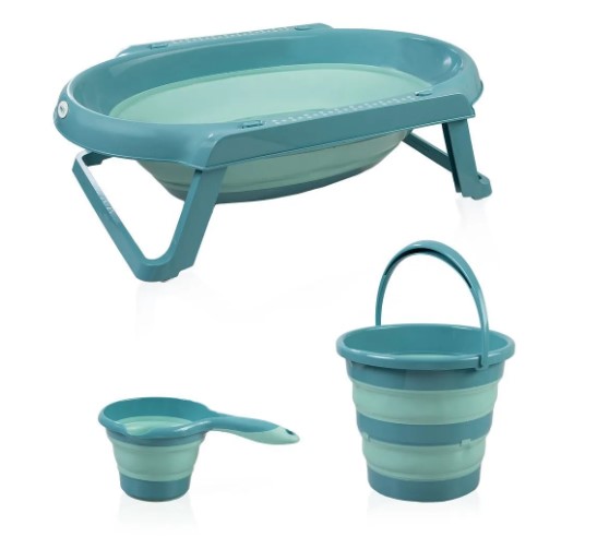 طقم حمام قابل للطي من بيبي جيم 3 قطع تركواز جديد