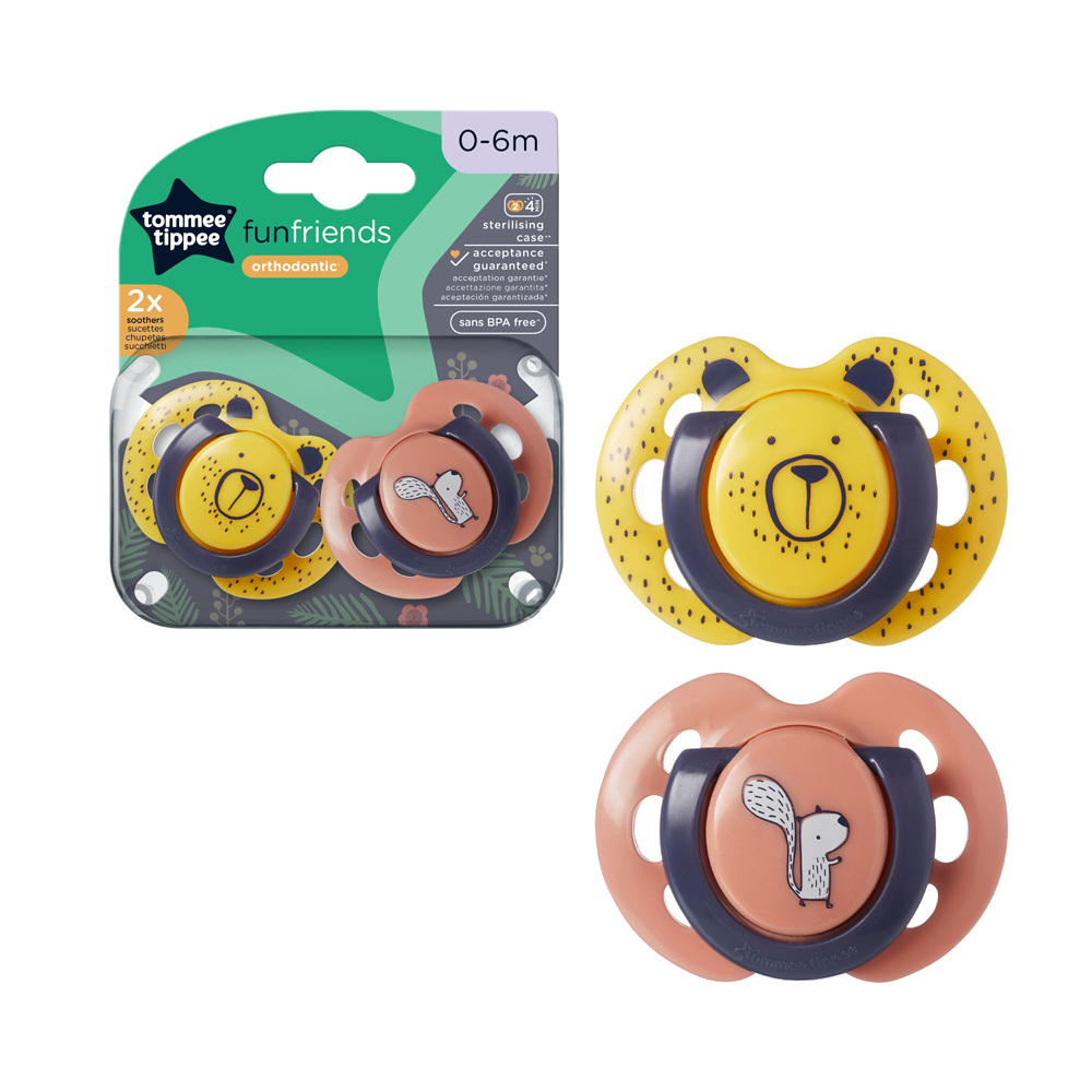 تصميم تقويمي متماثل*: تتميز لهّاية Tommee Tippee Fun Style بحلمة سيليكون متناسقة مع عدم وجود جانب “خاطئ” لأعلى، وسوف توضع دائمًا في فم الطفل بشكل صحيح في جراب التعقيم القابل لإعادة الاستخدام: ضعيها في الميكروويف لتعقيم اللهايات بسرعة وقتل ما يصل إلى 99.9% من البكتيريا. يمكن استخدامها كحقيبة للسفر، للحفاظ على اللهايات نظيفة ومعقمة أثناء التنقل: يقبلها 97.5% من الأطفال**، وتتميز الحلمة المصنوعة من السيليكون الخالية من مادة BPA والخالية من مادة BPA بنسبة 100% بأنها ناعمة ومرنة ومتينة للغاية ولا تمتص البقع والروائح الكريهة توصي بها الأمهات: تساعد الدمى ذات النمط المرح التي نقدمها والمحبوبة من الأمهات والأطفال على تهدئة الطفل، حيث أفادت 99% من الأمهات بأنهن يوصين بلهاياتنا للأمهات الأخريات** لطيفة على بشرة الطفل: يضمن الواقي المنحني ملاءمة مريحة بين أنف الطفل وذقنه، وتسمح الفتحات الكبيرة بتدفق الهواء بشكل أكبر وتمنع تراكم الرطوبة للمساعدة في منع تهيج البشرة