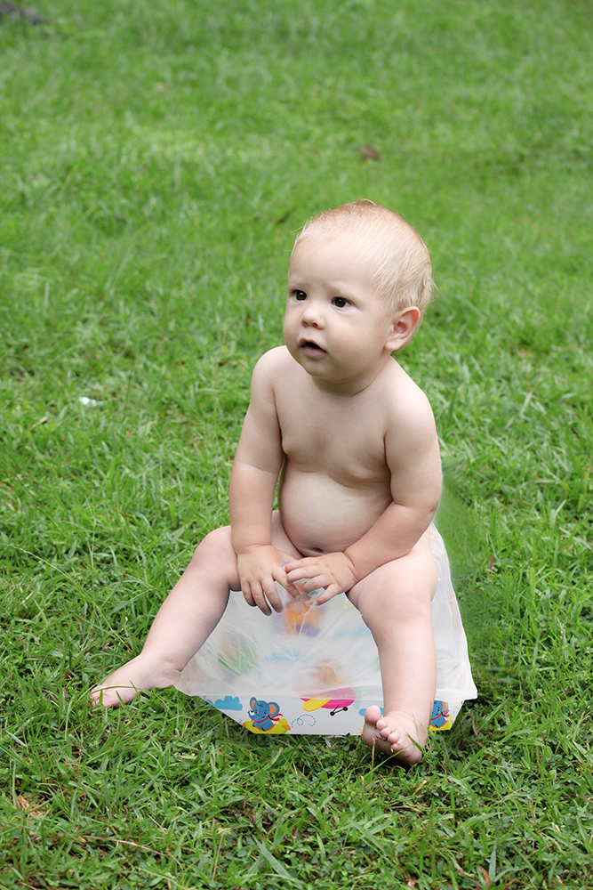اربطي الفوطة على الفور واطرحيها في سلة المهملات بعد كل دورة مياه للطفل.