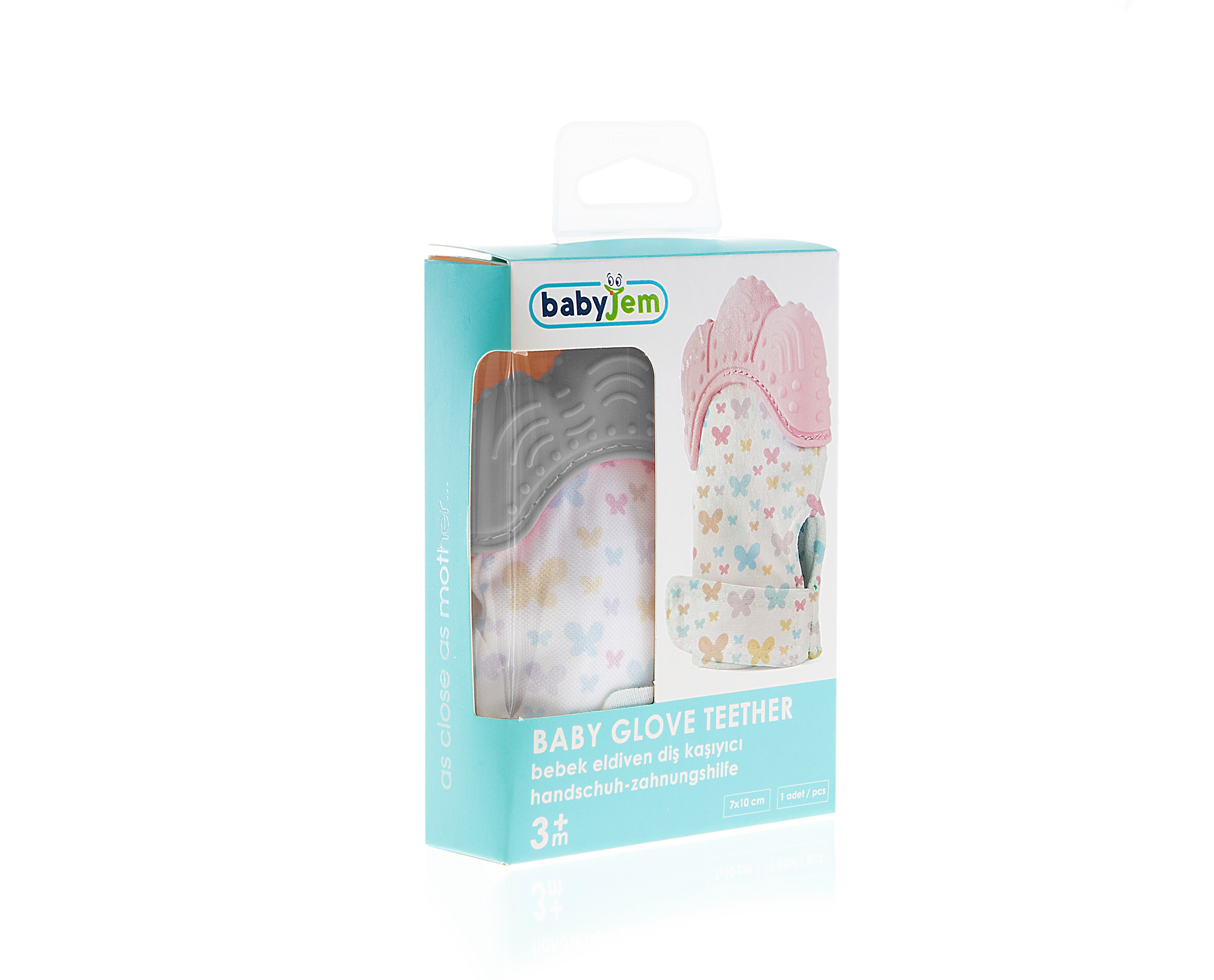 مصمم لتقليل الانزعاج عند تسنين طفلك. راقبي مدى تآكل القفاز طوال فترة الاستخدام، وإذا حدث ذلك، توقفي عن استخدامه. بينما تسقط عضاضات التسنين الأخرى من اليد، يلتف قفاز التسنين بيبي جيم حول يد الطفل، مما يساعده على قضاء وقت مريح في الحك الخارجي. يمكن استخدامه لليد اليمنى واليسرى. يمكن غسله في الغسالة على درجة حرارة منخفضة. لا تتركي طفلك بمفرده مع المنتج.”