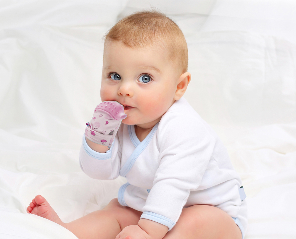 قفازات عضاضة الأطفال من بيبي جيم / قفازات قنفذ / وردي