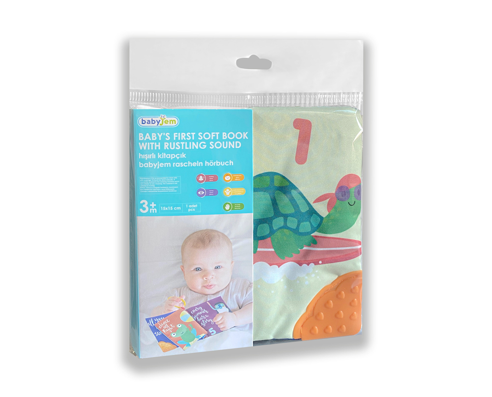 كتاب بيبي جيم أول كتاب ناعم للطفل مع صوت حفيف يساعد الملمس الناعم على اكتشاف الأنسجة المختلفة للتطور الحسي. من خلال لمس الكتاب، يجذب صوت الحفيف انتباه طفلك، كما يقوي عضلات النمو الحركي والحواس السمعية. مع جزء التسنين الخاص به، يوفر الاسترخاء أثناء فترة التسنين. حلقة سهلة التثبيت، توفر سهولة التركيب في مقعد السيارة وعربة الأطفال والمهد. مصنوعة من خامة قماشية. مناسب للأطفال بعمر 3 أشهر وما فوق. يحتوي كل كتاب على 4 أوراق و8 صفحات. مصنوع مقاس 15 × 15 سم