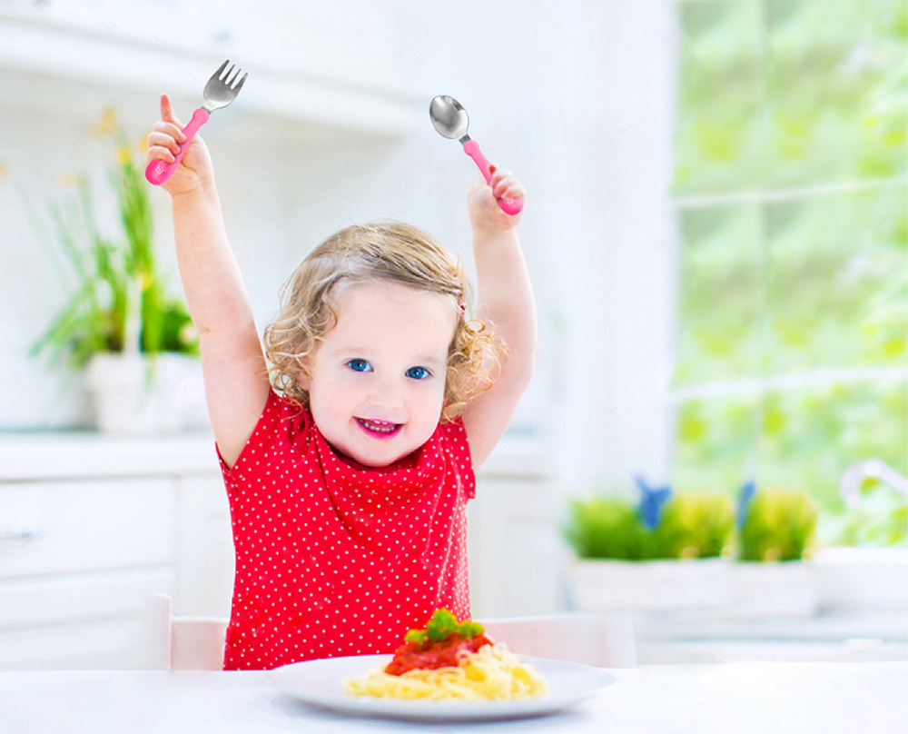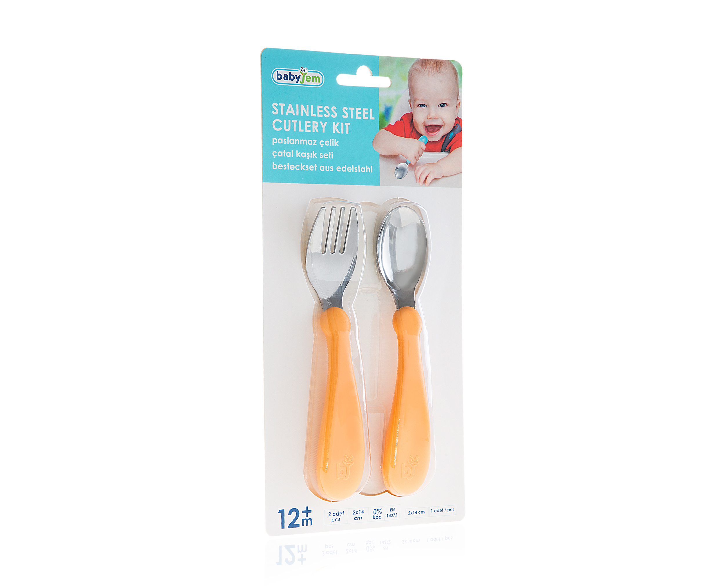 ملعقة وشوكة سومون من الفولاذ بيبي جيم