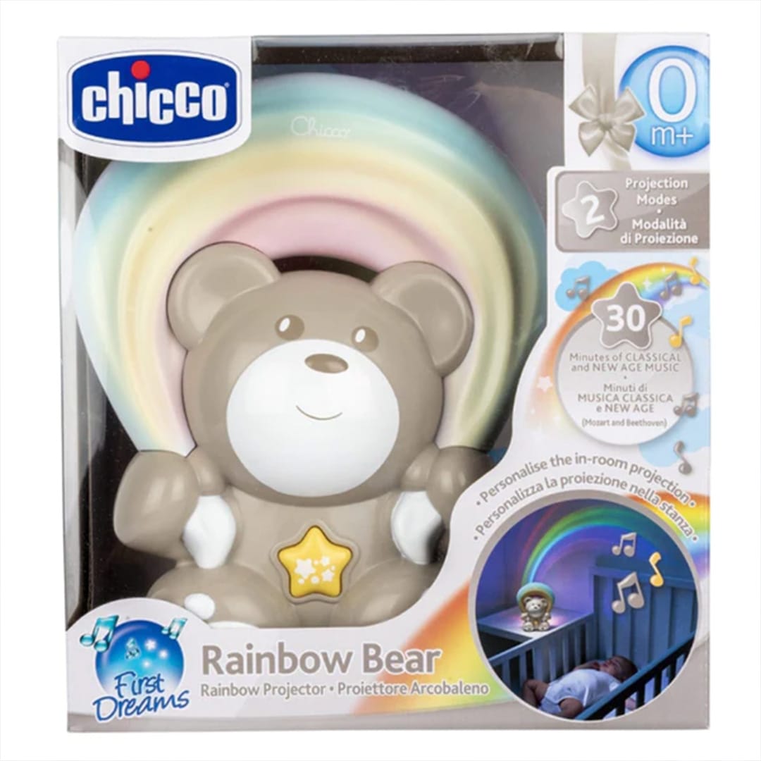 دب قوس قزح هو دب شيكو الذي يمنح أطفالك تأثير إسقاط قوس قزح المذهل والسحري على الحائط والسقف. يتميز بأوضاع موسيقية مختلفة، من العصر الجديد إلى ألحان موزارت وبيتهوفن الكلاسيكية، يفاجئ دب قوس قزح أطفالك بالألوان، لمدة 15-30 دقيقة من العرض.