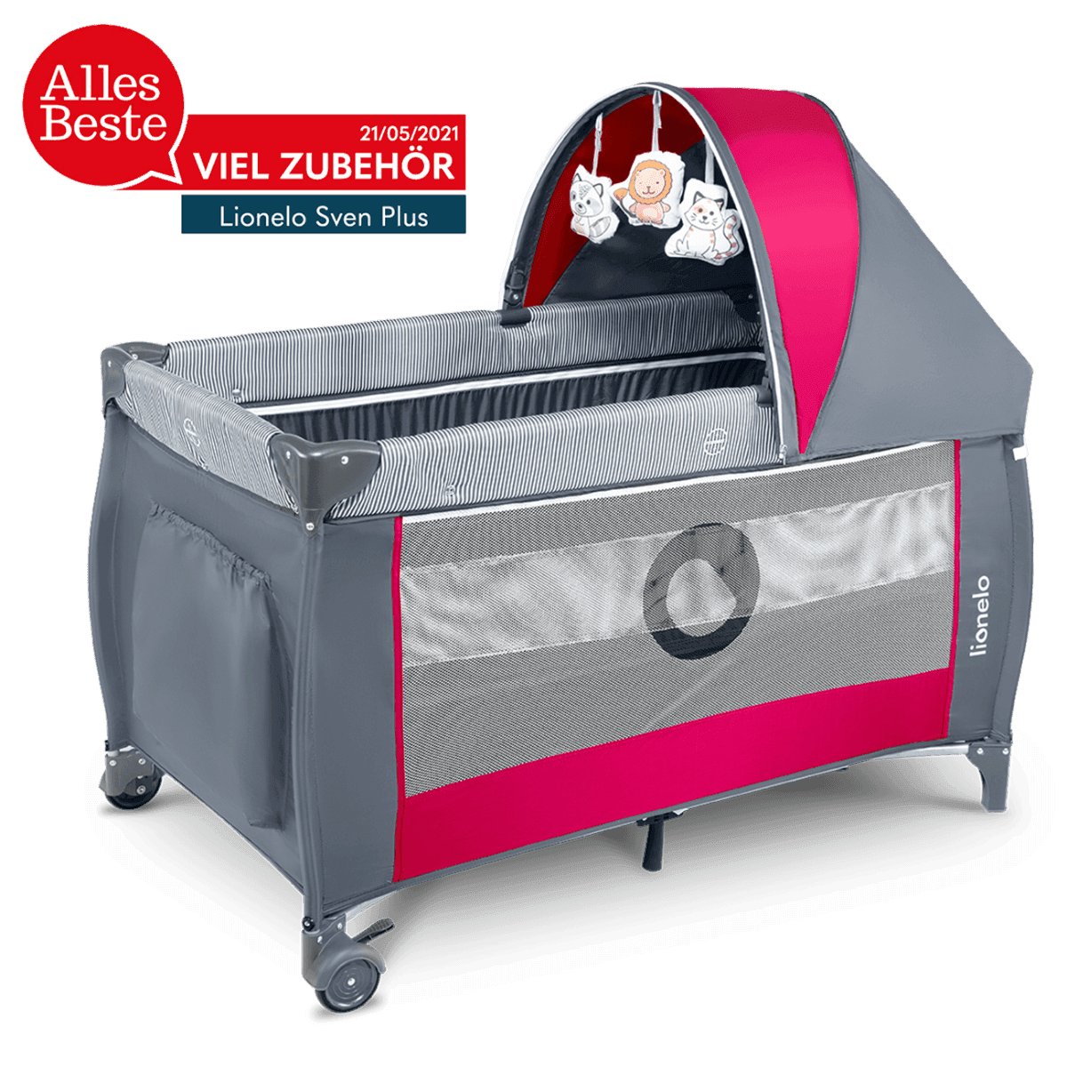 يسمح سرير الأطفال بوضع المرتبة على ارتفاعين وتأتي بمدخل جانبي بسحاب وجدران مزودة بشبكة تهوية لتدوير الهواء بشكل مناسب. المنتج له هيكل مستقر ونظام قفل LockGuard الذي يحمي المنتج من الطي الذاتي. يتم تزويد Sven Plus بساط تغيير بحواف مرتفعة وجيوب وظيفية ومقصورات لأدوات العناية.