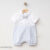 A classic formal romper with double-breasted details and a soft blue hue, perfect for stylish baby boys.