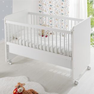 BW1090 White Rocking Mother Side Crib with wheels 120 X60