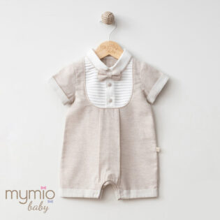 Mymio Crinkle Fabric Baby Boy Overall Romper, (4325), Beige, 6 Months