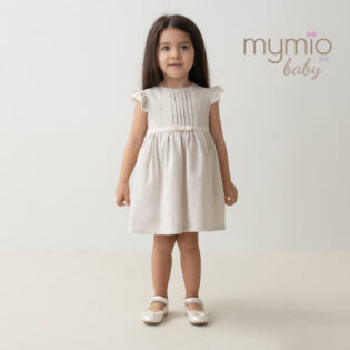 Mymio Short Sleeve Baby Girl Dress, (3908), Beige, 18 Months