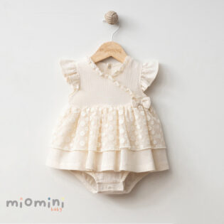 Mymio Embroidered Crinkle Baby Girl Bodysuit, (4263), Beige, 12 Months