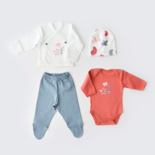 BiOrganic Koala Jungle Baby Side Snap Shirt Baby Set 3 Pcs Pink (0-3 Months)