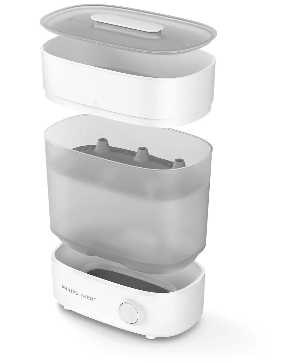 Sterilizing is gentle, effective and chemical-free with Philips Avent. Every sterilizer uses the power of pure steam – nothing more, nothing less – to kill 99.9% of harmful germs*.