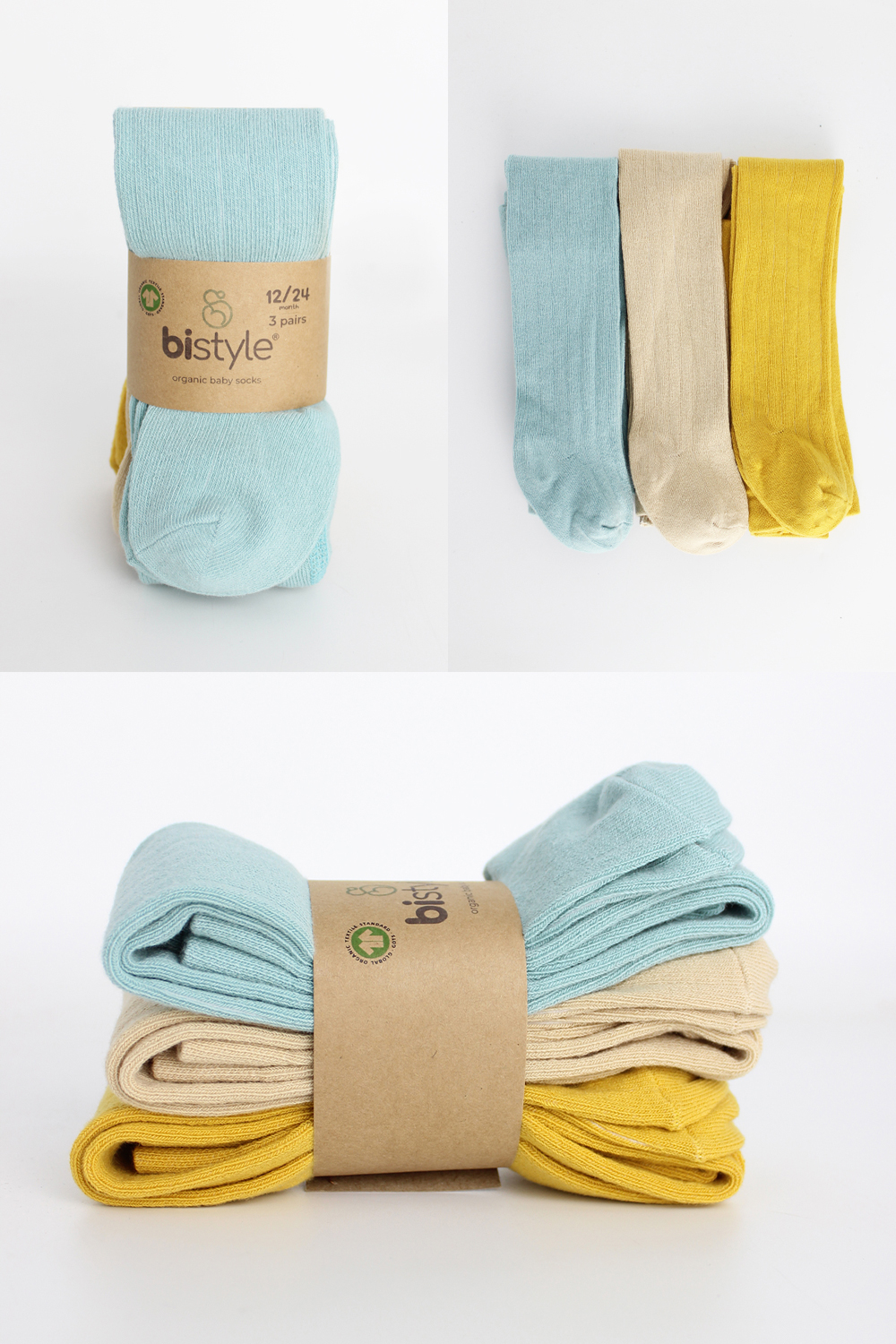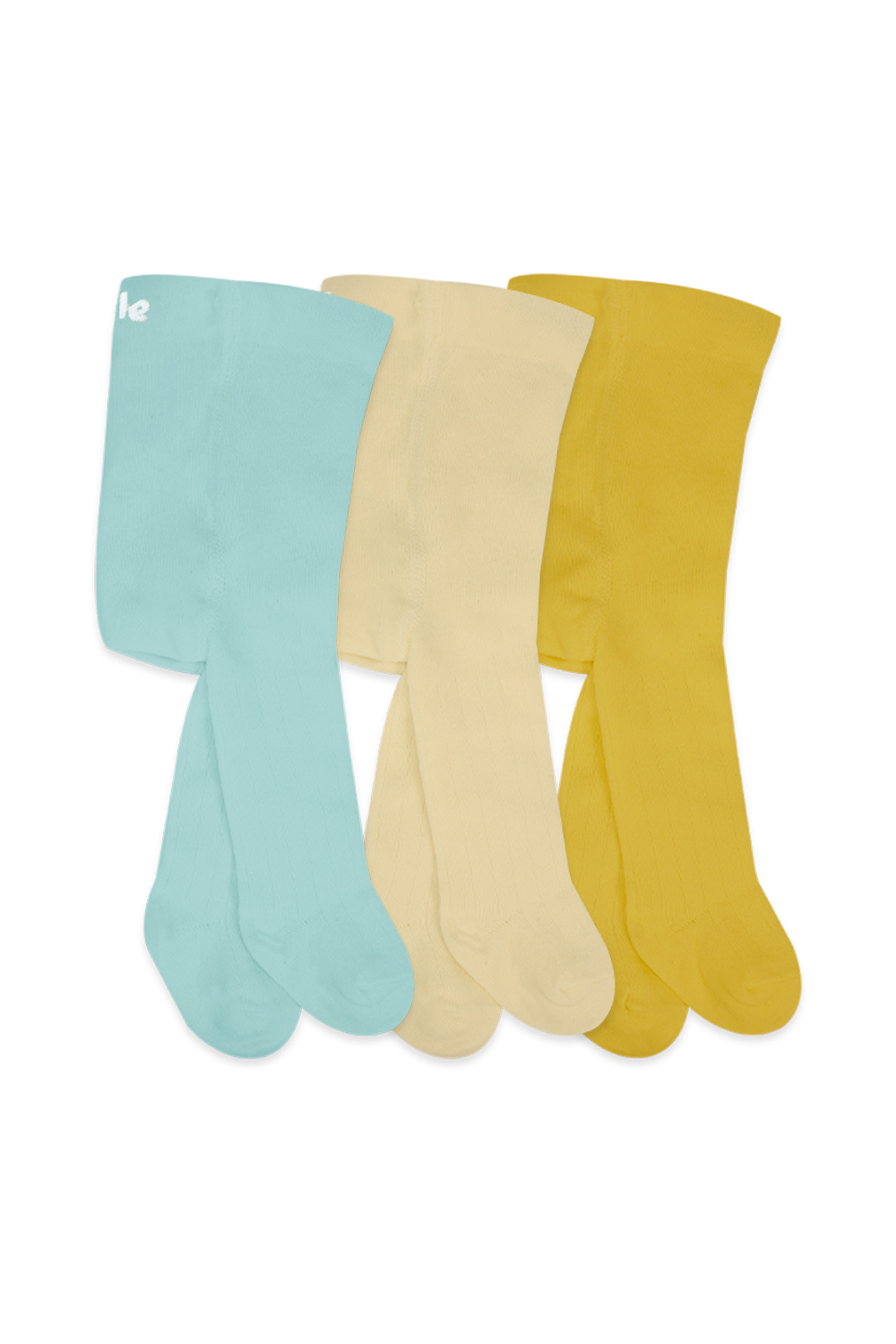 Bistyle 3-Pairs Combed Cotton Tights (0-6) (Blue, Brown, Yellow)