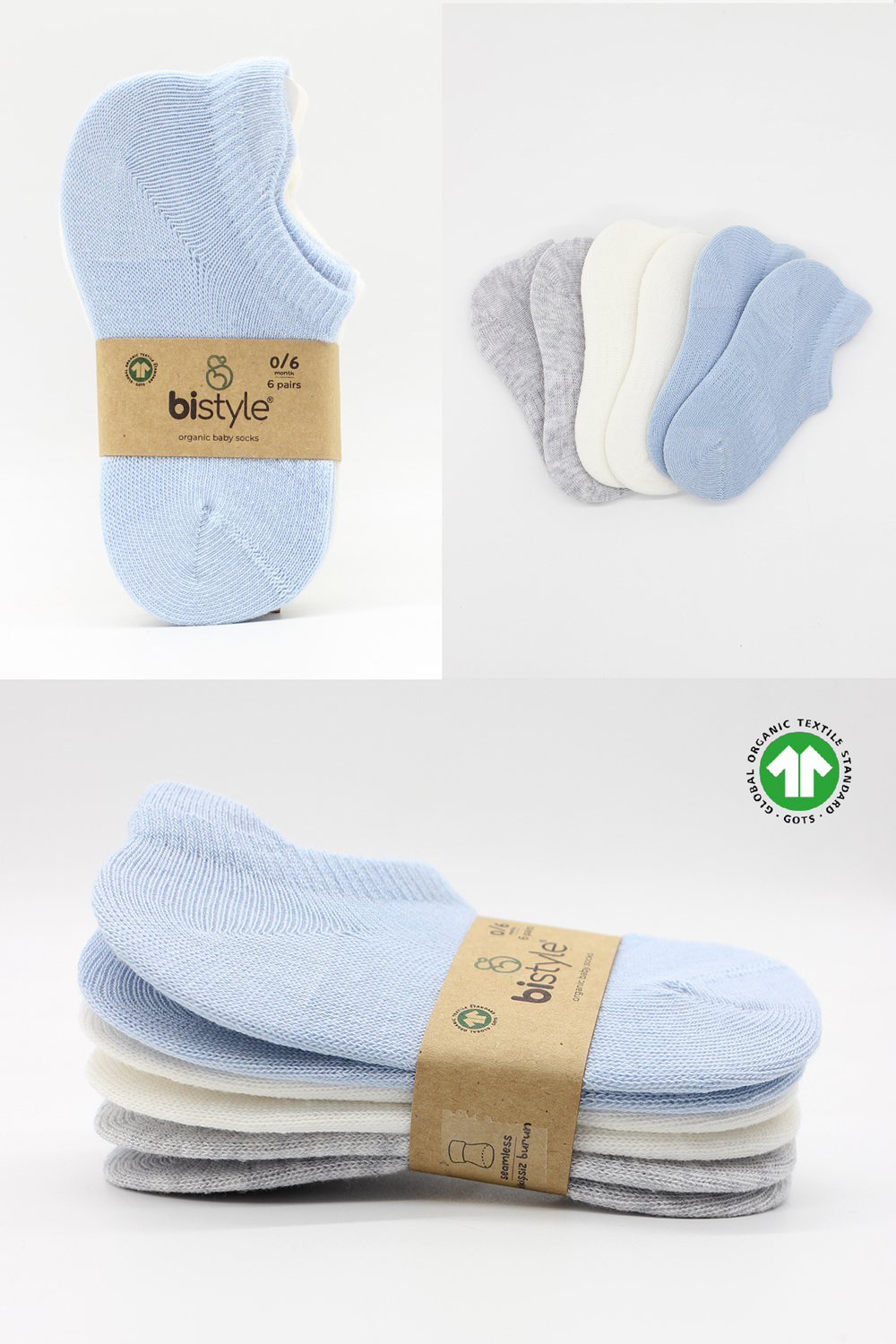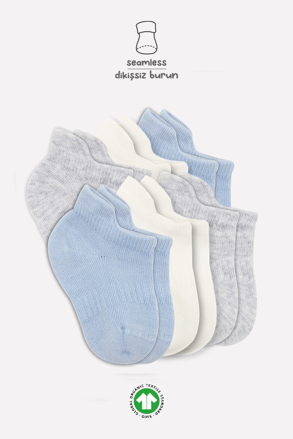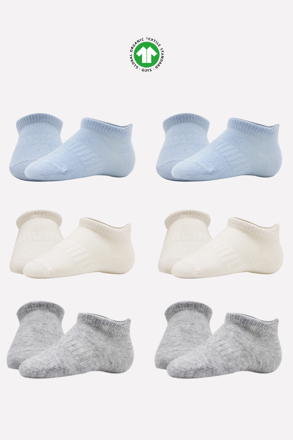 Bistyle 6-Pairs Combed Liner Socks (0-6 m) (Blue, Grey, Beige)