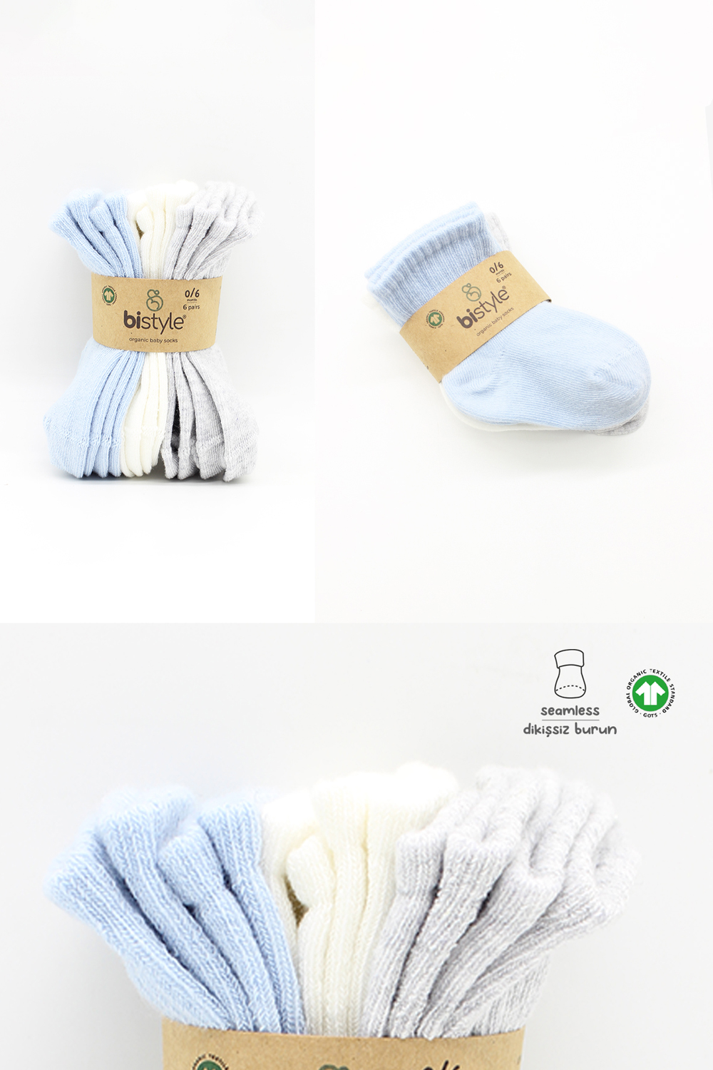 Bistyle Basic 6-Pairs Combed Flat Quarter Socks (12-24 m) (Blue, Grey, Beige)