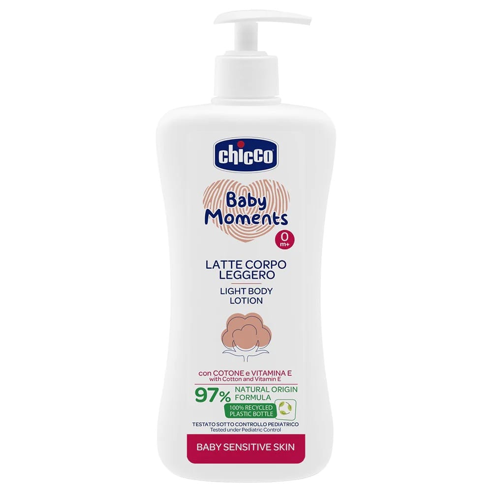 - Chicco’s Baby Moments light body milk is a delicate lotion, formulated with 97% natural ingredients to protect baby’s sensitive skin.