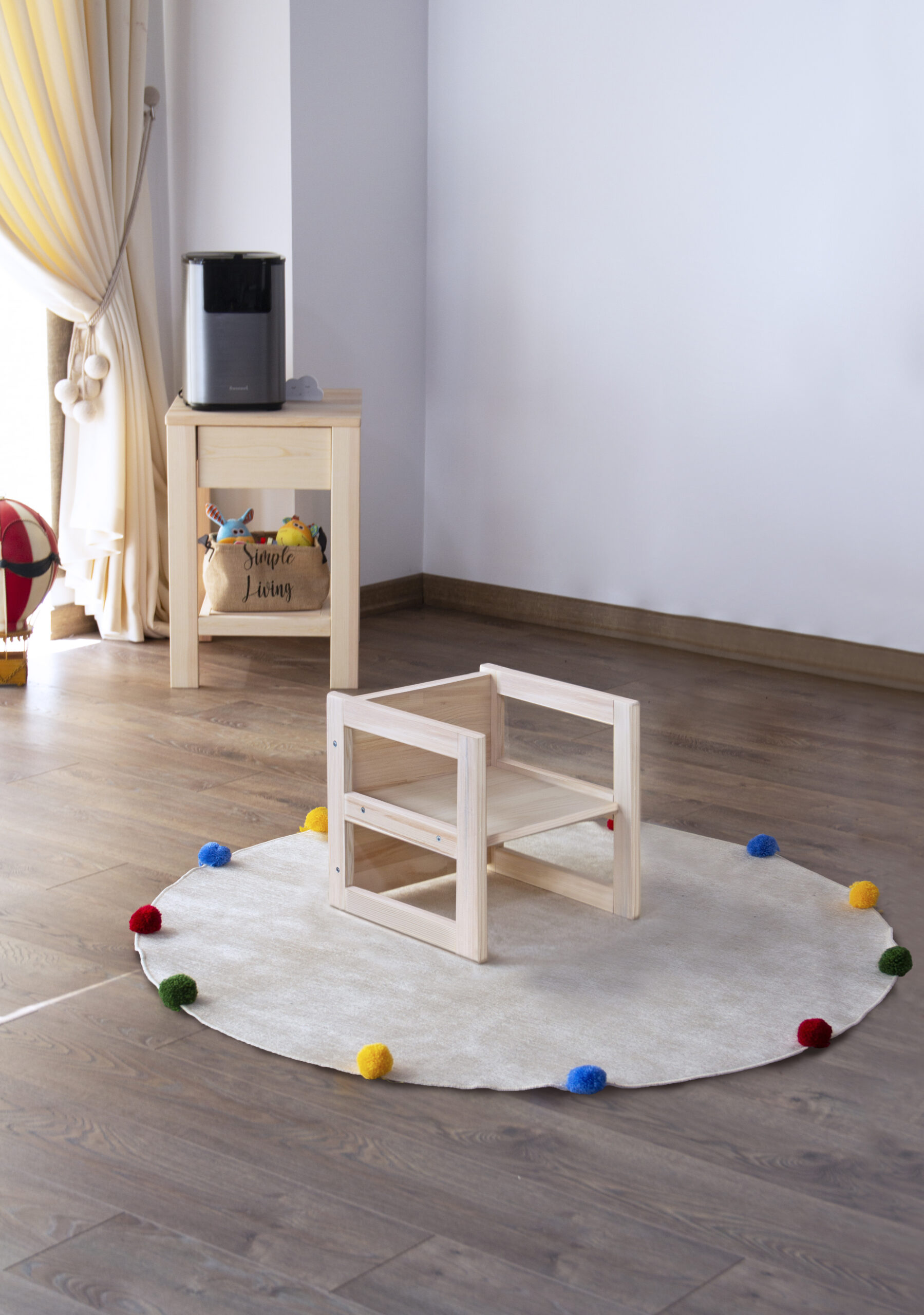 Kukka Solid Wood Convertible Table and Chair is a multipurpose convertible Montessori product. The product can function as both a stool and a table. Your child can either sit on it and do desk activities or use it as a table and play fun games.
