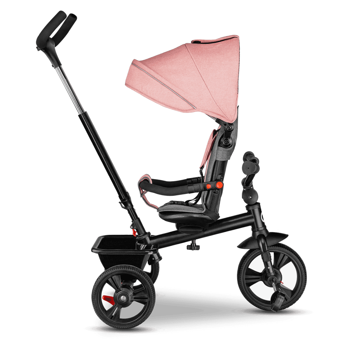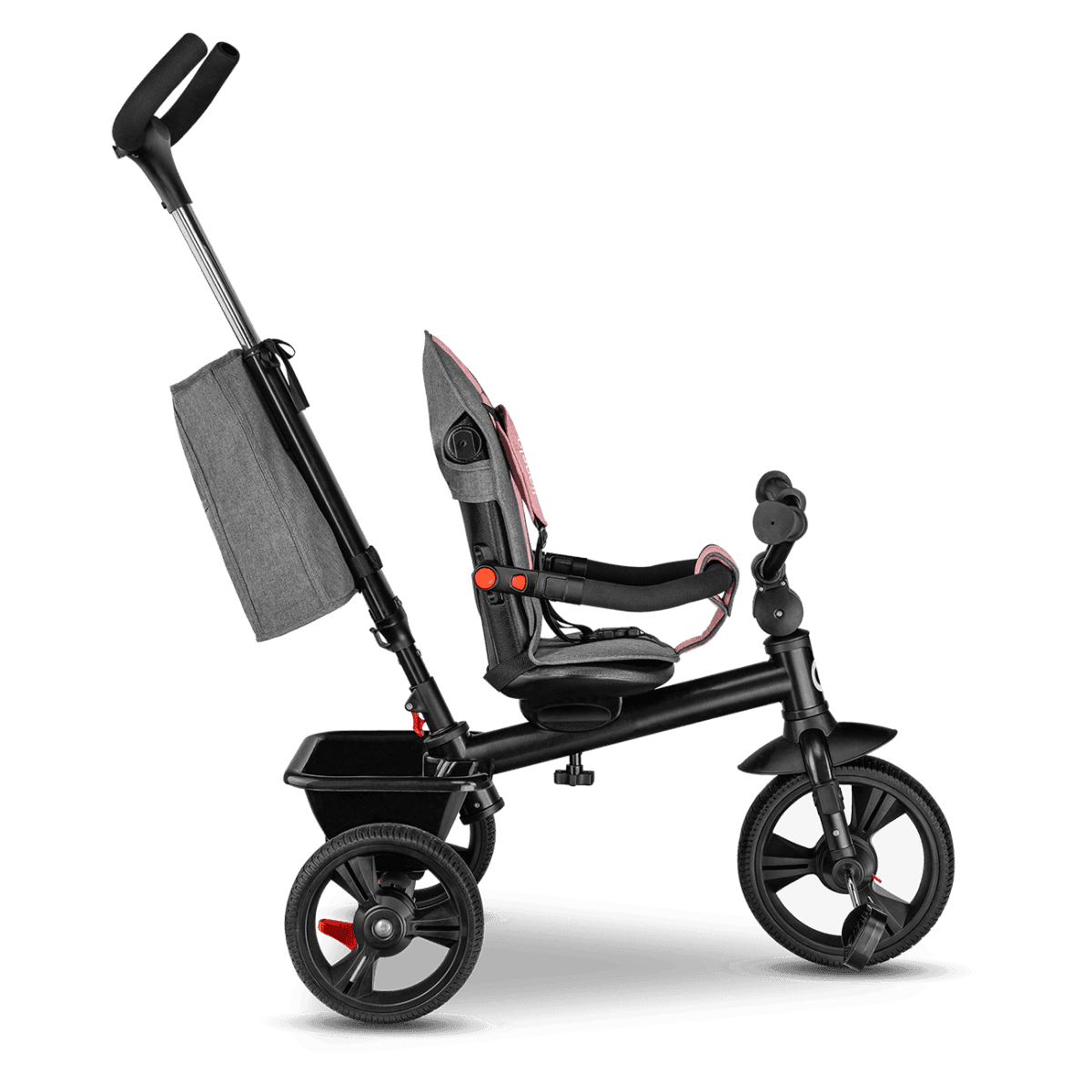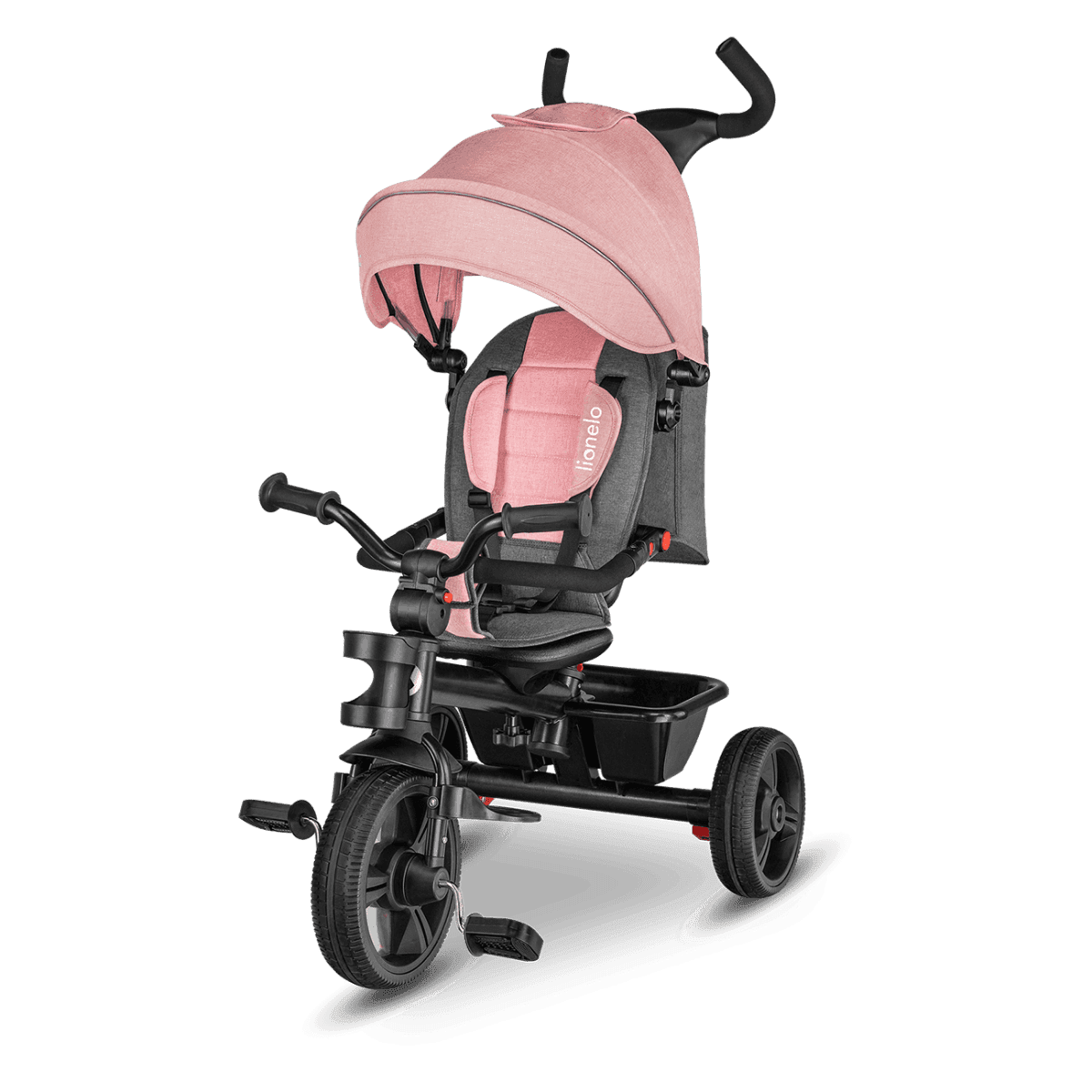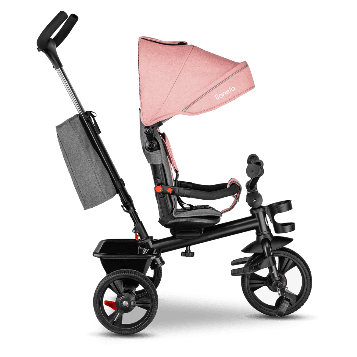 Haari tricycle 2 in 1 is equipped with light wheels with a tread, made of high-quality PU. The cover above the front wheel performs a role of the mudguard and protects child’s legs against entangling. The product has a footrest for children who cannot reach pedals yet. The use of a free wheel allows the child to pedal, yet it is a parent who retains full control over direction and speed of riding. There is an additional help in the form of an adjustable handle, the height of which can be adapted to own height.