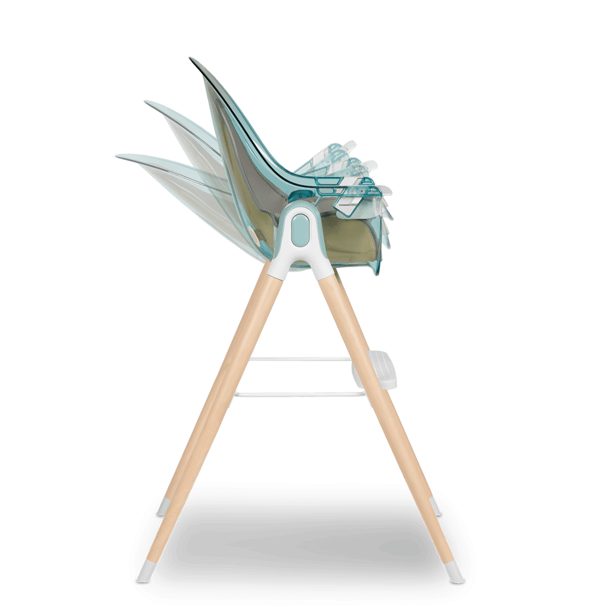 Maya high chair can transform with time. At first it serves as a feeding chair, but when the child gets older, it may be used as a low chair. Thanks to a set of skids, sold separately, Maya performs well as a rocking chair too. The product features a 3-level seat inclination adjustment and horizontal 2-level tray adjustment.