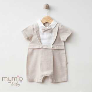 This sweet and timeless dress features a crisp white collar and soft ruffled sleeves for a charming baby look.