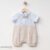 A classic formal romper with double-breasted details and a soft beige, perfect for stylish baby boys.