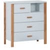 It is produced from 18 mm chipboard material and wood. Self-decelerating tandem rail system is used in laundry drawers.