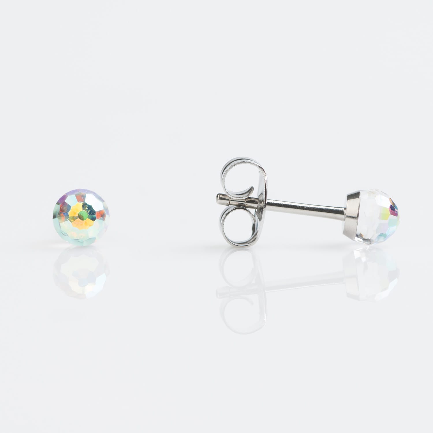 Tiny Tips Stainless Steel 4mm AB/Rainbow Crystal Ball