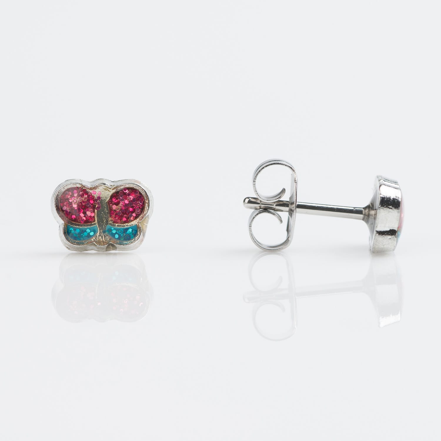 Tiny Tips Stainless Steel 5mm Pink/Green Glitter Butterfly