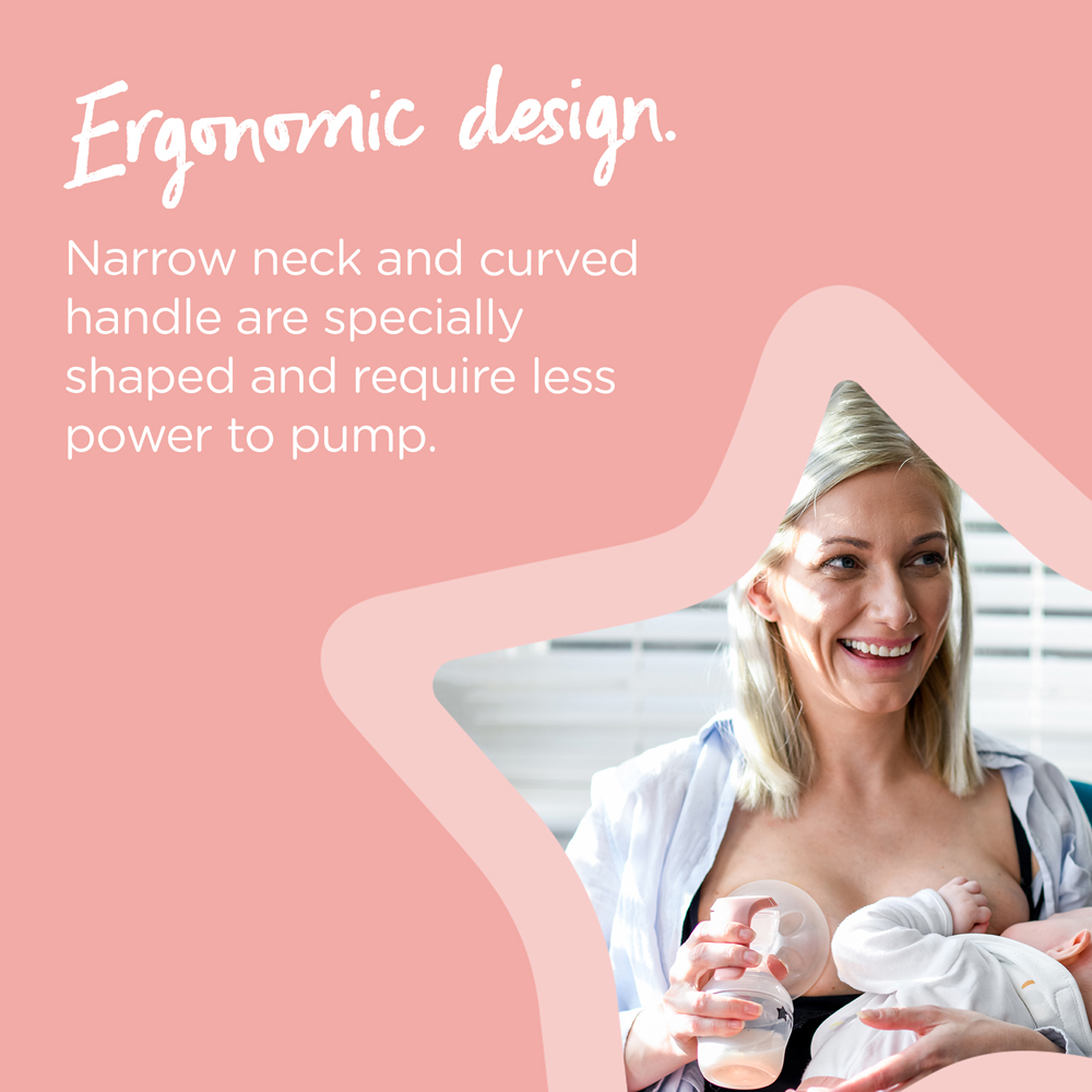 Ideal for occasional use wherever you choose, or to express from one breast while your baby feeds from the other, this breastmilk pump features a cup with massaging petals to help stimulate milk flow. The manual breast pump even comes with a 150ml Closer to Nature® baby bottle with measurement markers so you can keep track of how much you’re expressing. It also connects to all sizes of our Closer to Nature and Advanced Anti Colic baby bottles*, making it easily adaptable to your unique breast pumping experience.